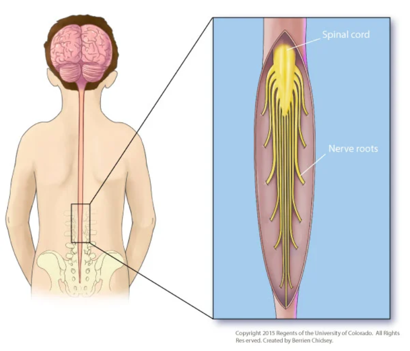 Figure 1. Anatomical overview of the spinal cord and dorsal nerve roots involved in SDR (Children’s Hospital Colorado).